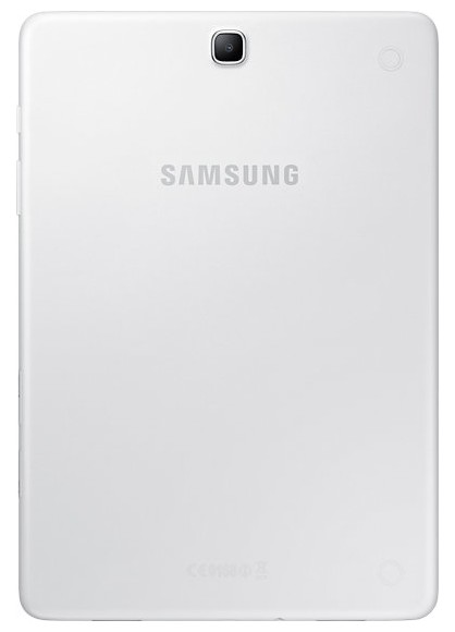 Основные | Производитель | Samsung | | Тип | Cенсорный | | Поддержка сетей | 2G/3G/4G LTE | | Цвет | Белый | Корпусс | Размер,мм | 242.5 x 166.8 x 7.5 | | SIM | Micro | | Вес, кг | 453 | Дисплей | Тип | TFT | | Диагональ | 9.7 | | Разрешение | 768 x 1024 | ОС | OS | Android | | Версия ОС | Android 5.x Lollipop | | Процессор | Quad-core 1.2 GHz | Память | Тип карты памяти | microSD, до 128GB | | Встроенная память | 16GB | | Оперативная память | 2GB | Камера | Основная камера | 5MP | | Максимальное разрешение | 2592 x 1944 | | Спецификация фотокамеры | Автофокус | | Видео | 720p | | Фронтальная камера | 2MP | Соединение | WLAN | 802.11 a/b/g/n | | Bluetooth | v4.0 | | NFC | Нет | | Радио | Нет | | USB | microUSB v2.0 | | GPS | Есть | Аккумулятор | Емкость | 6000 | | Время работы батареи в режиме использования | 11 | Гарантия