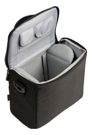 Сумка вмещает фотоаппарат, линзы и аксессуары.